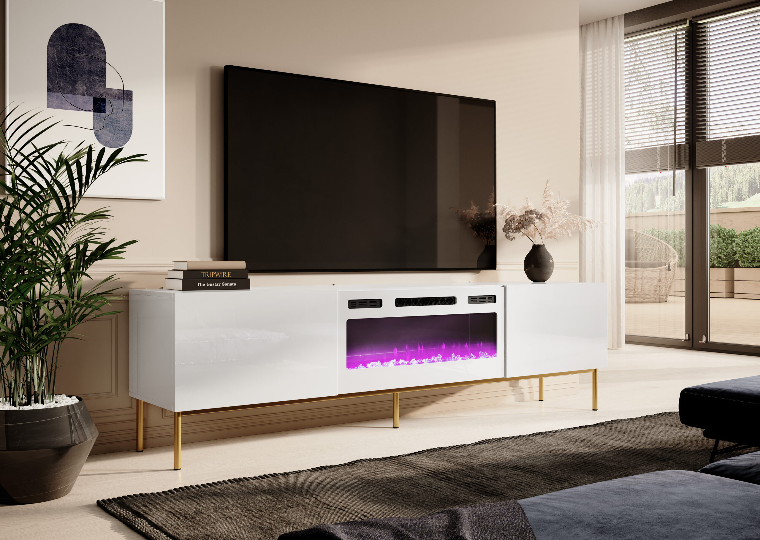 Van een minimalistische, eenvoudige kast met gesloten fronten hebben we een nieuwe en nog functionelere kast gemaakt. SLIDE tv meubel met een plank geeft karakter aan de kamer door de glans op de fronten, zijkanten en bovenkant.